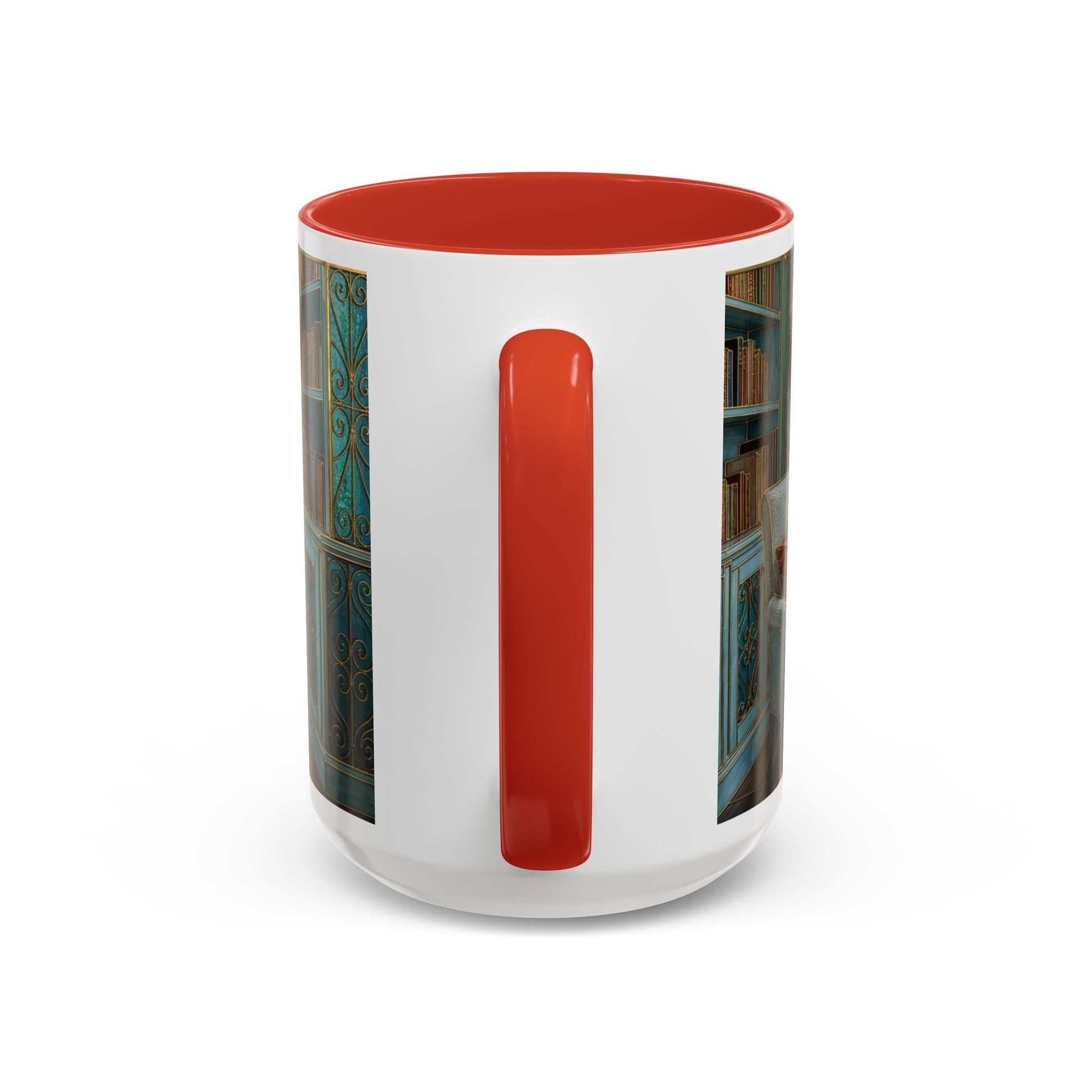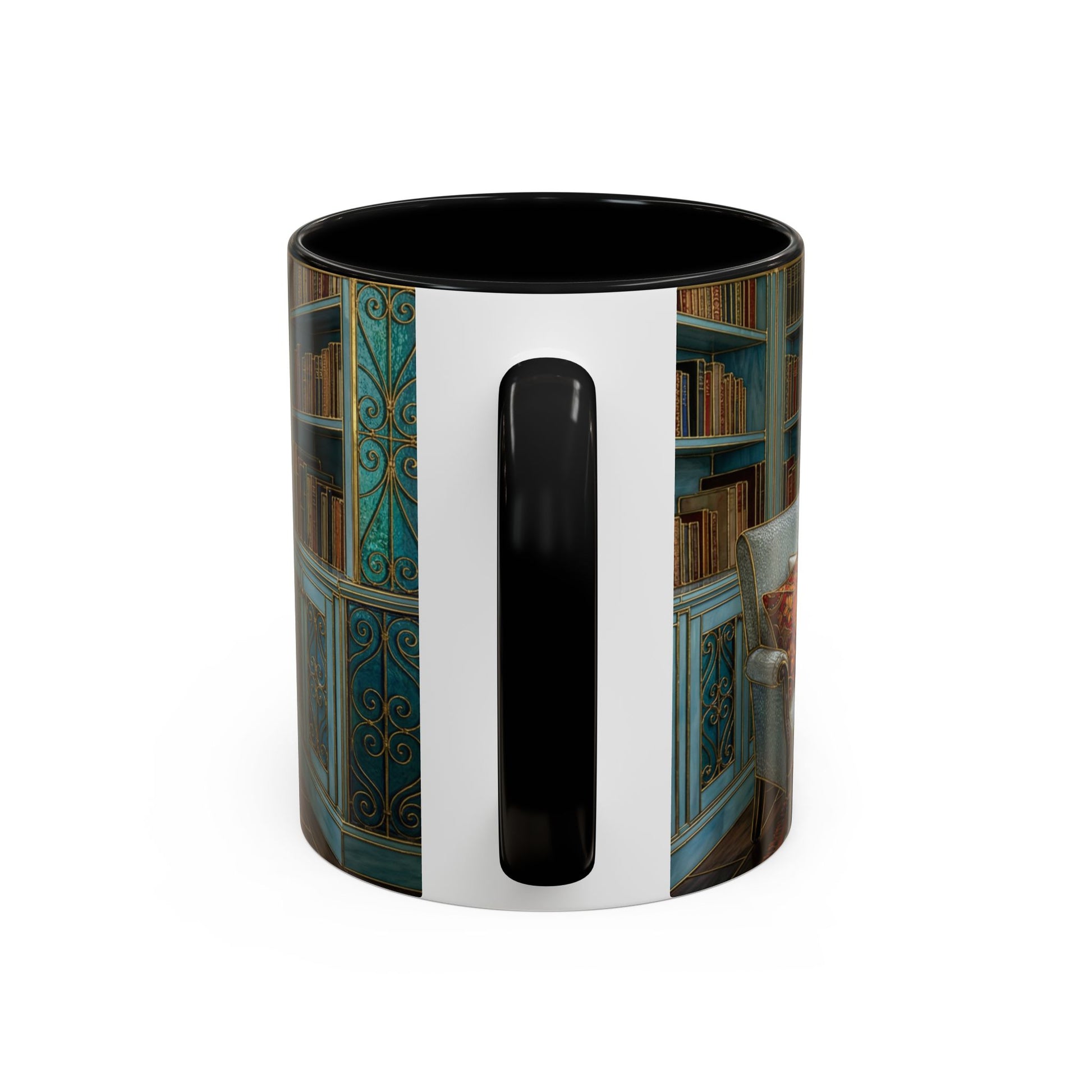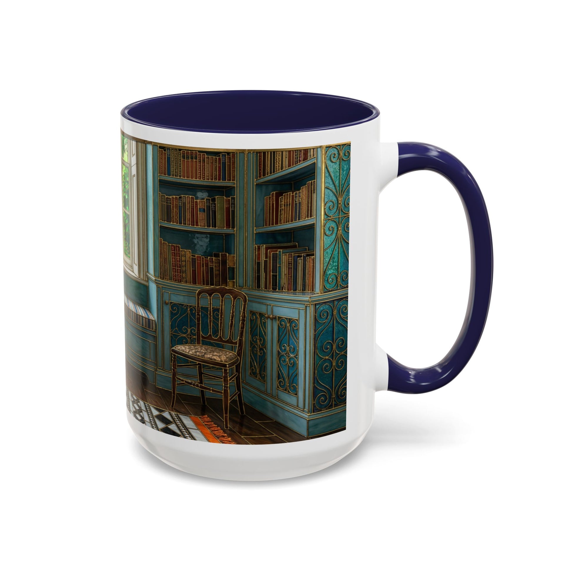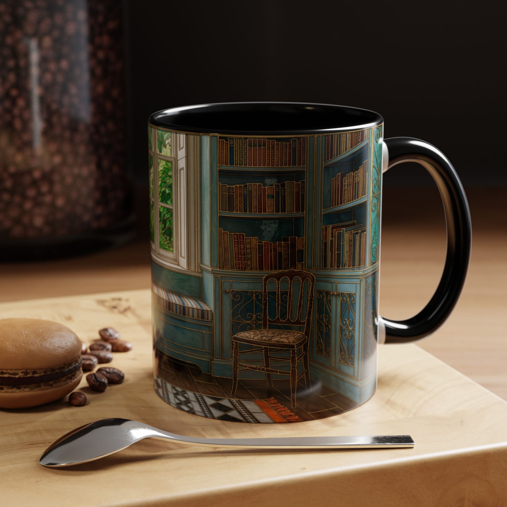 Cozy Reading Nook Coffee Mug — Vintage Library Window Scene Accent Mug